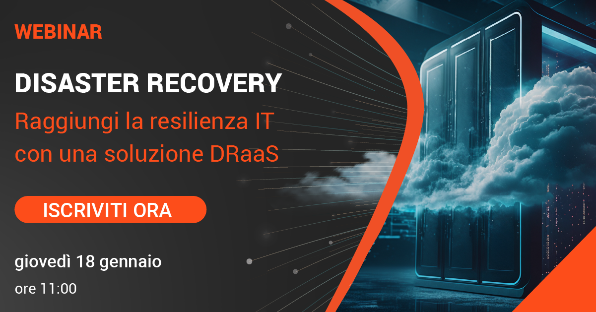 [WEBINAR] DISASTER RECOVERY, Raggiungi la resilienza IT con una soluzione DRaas – 18 gennaio 2024